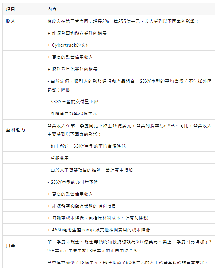 總結來看,特斯拉在2024年第二季度表現強勁,儘管面臨挑戰,仍實現了多項業務的創紀錄增長。公司在技術創新和成本控制方面的努力,為其未來的持續增長奠定了堅實基礎。