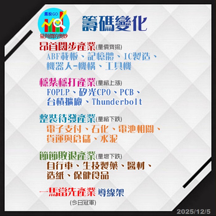 美國商務部公布9月核心PCE年增2.8%,低於市場預期2.9%,整體PCE年增2.8%,預合市場預期,強化下周聯準會降息機率,激勵美國四大指數都上漲,其中費城半導體指數上漲1.09%,逼近前高,有利下周科技類股走勢,大盤指數目前沿著5日線上漲,指數偏多操作,周五盤面以載板族群較強勢,欣興.景碩大漲作收,機器人概念股也多檔上漲,輪動輪漲格局不變!!!觀察OTC櫃買指數,已站回月線和255.5點頸線之上,暫以盤整視之,重個股題材和籌碼操作,目前法人看好明年美國四大雲端服務供應商資本支出將大幅提高至5800億,相關AI供應鏈都值得期待,包括伺服器.散熱.ASIC/晶片設計以及高階封裝等相關廠商,應將其列為中長線值得持續追蹤的投資主軸,若不知如何選股或操作,可持續追蹤和訂閱我的看盤日記:https://www.fanbar.tw/zh-tw/victor/